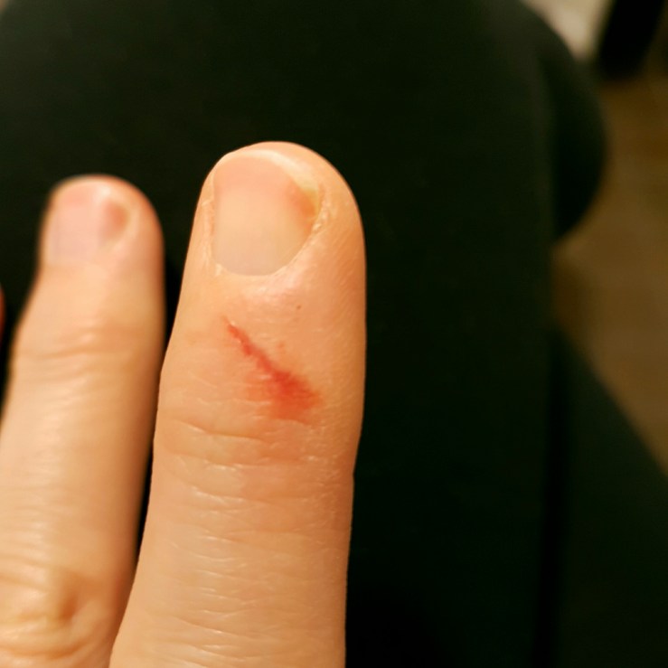 Oh how I hate my profession every time I cut my finger! This time I was slicing a crusty bread and the crust was slightly too hard for the knife. As a result the knife slipped into my index finger, rather deep. But I made a compression bandage and the cut is pretty neat at the moment.